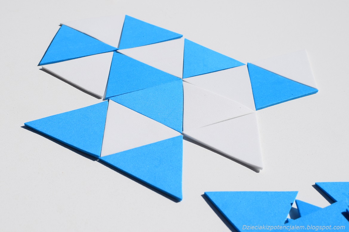 Macie ochotę na rozgrywkę? Poniżej udostępniam szablon do pobrania. Drukujemy dwa razy, laminujemy i gramy. Jeśli jednak chcecie wykorzystać piankę kreatywną lub tekturę to oczywiście wystarczy wyciąć jeden trójkąt jako wzór do odrysowania.