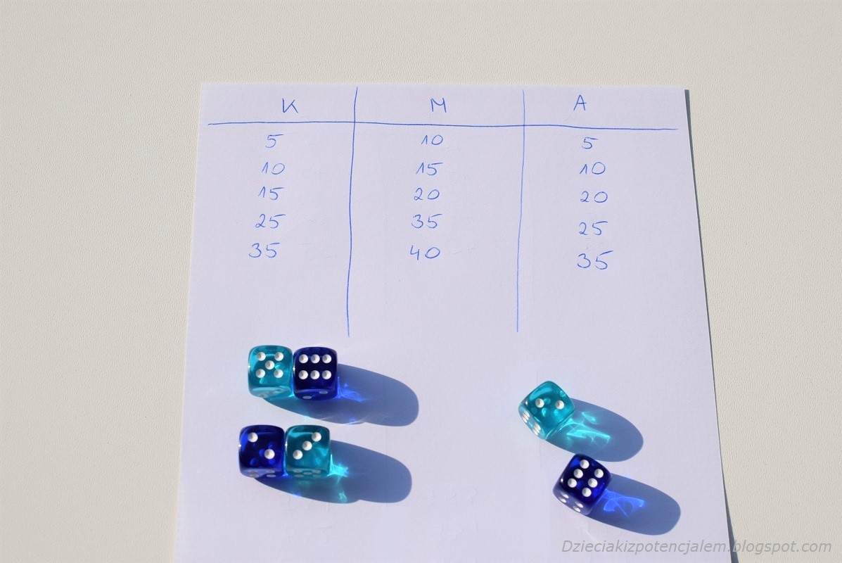 Inne zabawy matematyczne z kostkami do gry znajdziecie tutaj: