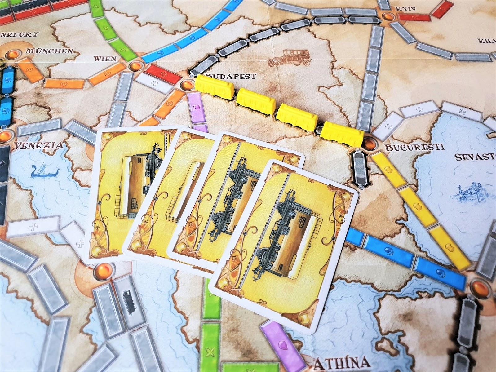 - W swojej turze gracz może albo dobrać dwa wagoniki (oba z tych odkrytych lub oba ze stosu lub po jednej odkrytej i ze stosu) albo wybudować trasę, używając do tego odpowiedniej ilości kart we właściwym kolorze.