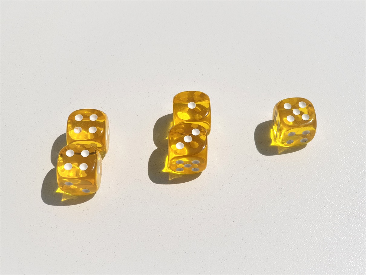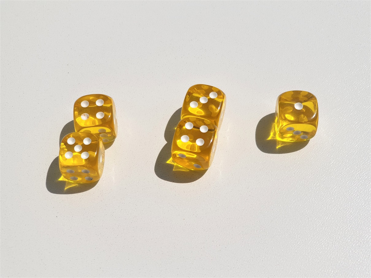 Bardzo lubię kości do gry bo zajmują mało miejsca, a dają praktycznie nieskończenie wiele możliwości zabawy. To sprawia, że nadają się idealnie jako gra na wakacje – kości zawsze zmieszczą się do plecaka, a nieskomplikowane zasady większości gier sprawiają, że łatwo znaleźć partnerów do rozgrywki.