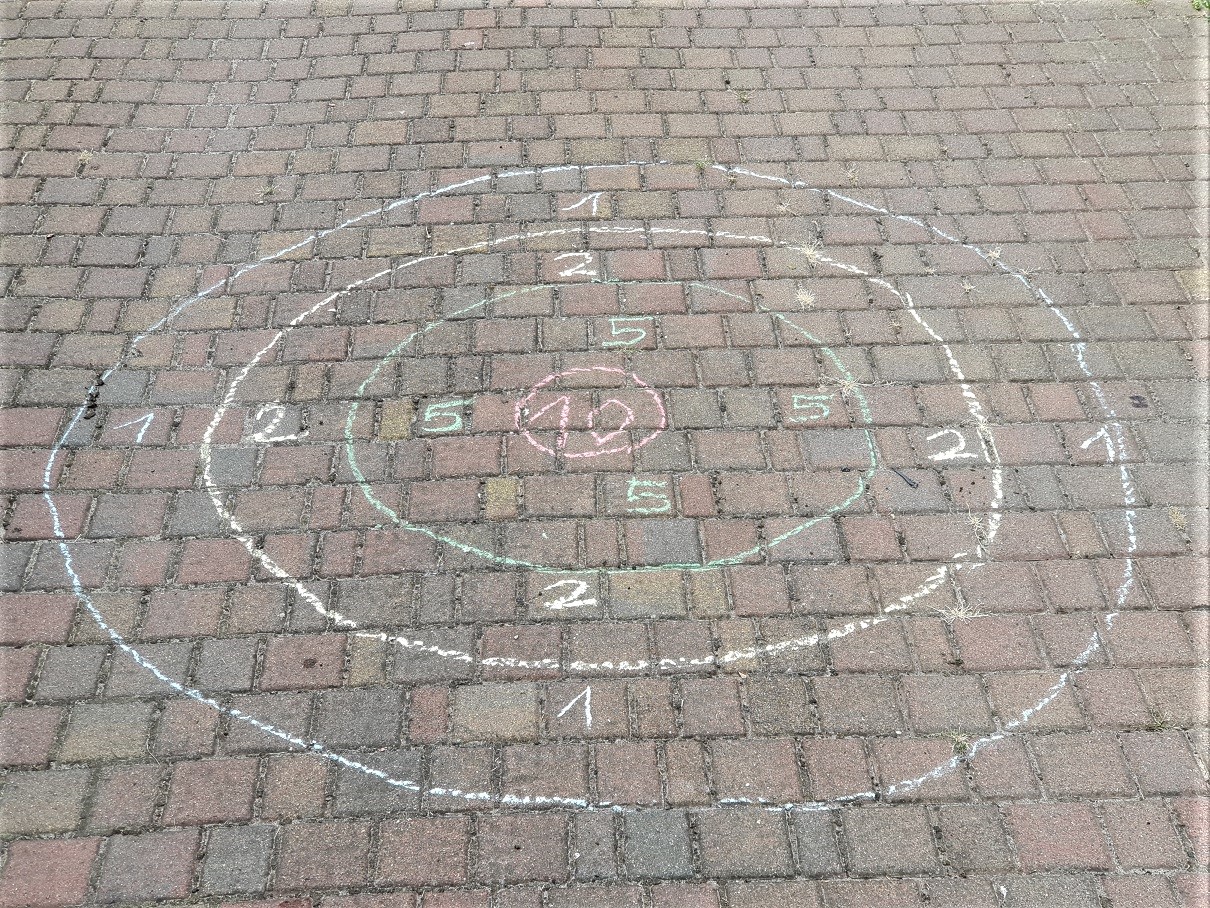 Rzucamy kamieniami do celu z wyznaczonej odległości. Każdy ma po pięć kamieni, rzuca nimi po kolei, a następnie oblicza uzyskany wynik. Później kolej przechodzi na drugiego gracza. Gramy kilka rund, a po każdej punkty zapisujemy kredą na chodniku. Na koniec każdy z graczy podlicza zdobyte przez siebie punkty.
