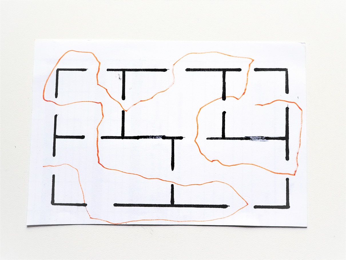 Co zatem można zrobić aby łamigłówkę jednak wykorzystać do zabawy? Zamknąć przynajmniej jedno przejście w pokoju z nieparzystą liczbą drzwi. Ja zamknęłam dwa. Przy czym zadanie robiliśmy nie znając jeszcze zasady, umożliwiającej jego rozwiązanie (wtedy to już nie jest wyzwanie).
