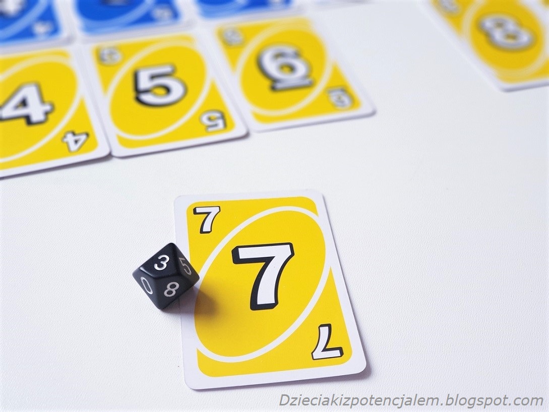 Rzucamy kostką 10 ścienna. Sprawdzamy jaka liczba wypadła i ze stołu dobieramy kartę z taką wartością, która zsumowana z wynikiem rzutu kostką, da nam 10.