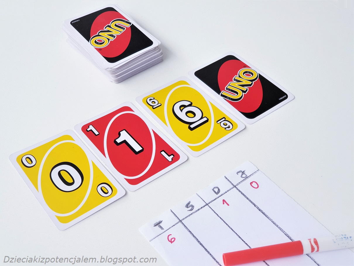 Może w niej wziąć udział 2+ graczy (w zasadzie nie ma limitu). Do zabawy będziemy potrzebować talii kart Uno, z której usuwamy karty specjalne, a pozostawiamy tylko te z liczbami 0-9. Karty Uno możecie zastąpić talią tradycyjnych kart o wartościach 1-9 lub kością dziesięciościenną.