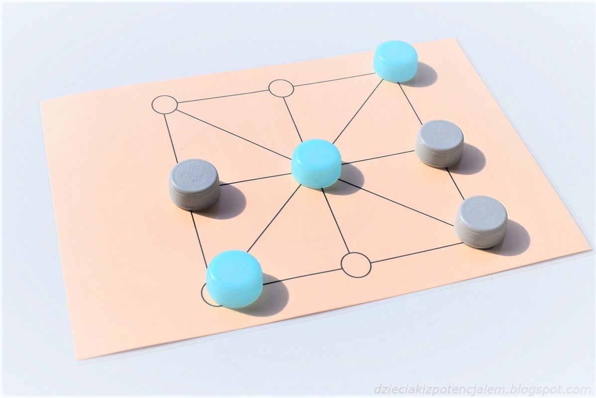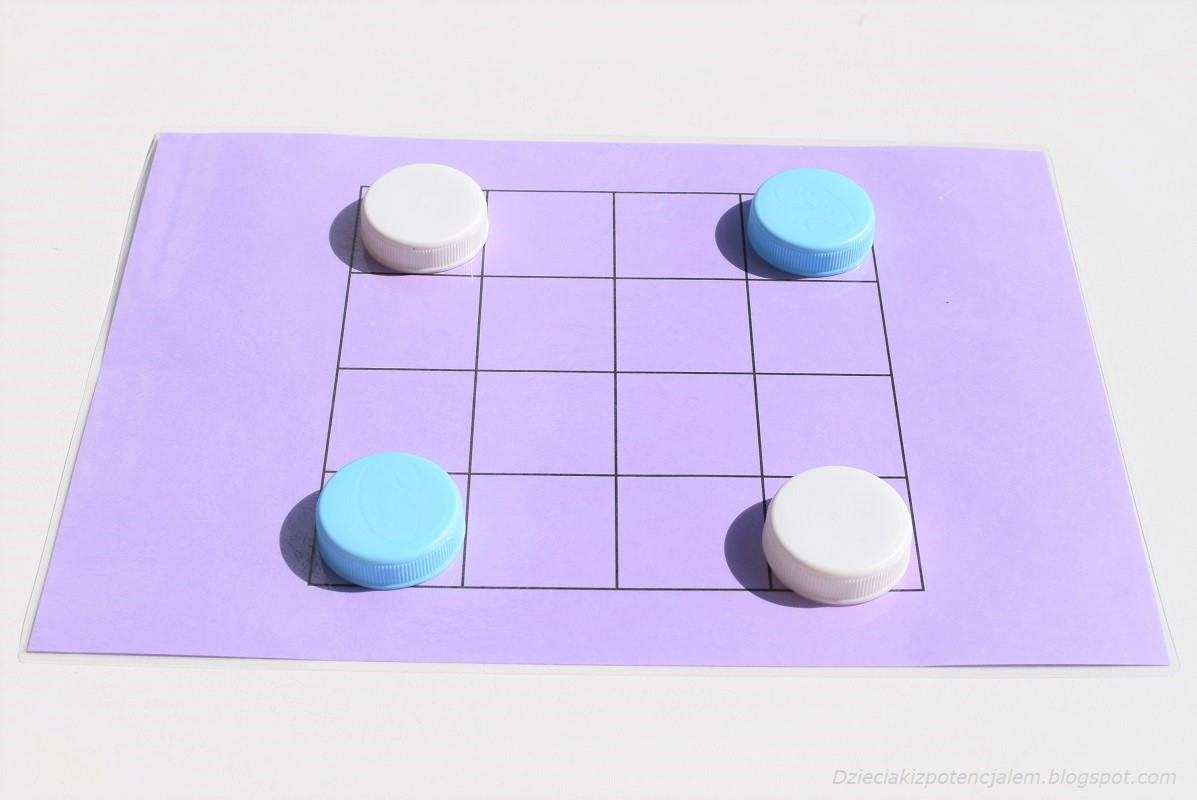W zestawieniu znalazły się gry dla dwóch osób. Każda z nich składa się z planszy i zestawu pionków. Ja najczęściej wykorzystuję do tego plastikowe nakrętki po napojach ale równie dobrze mogą to być tradycyjne pionki czy jakiekolwiek znaczniki w wybranych kolorach.