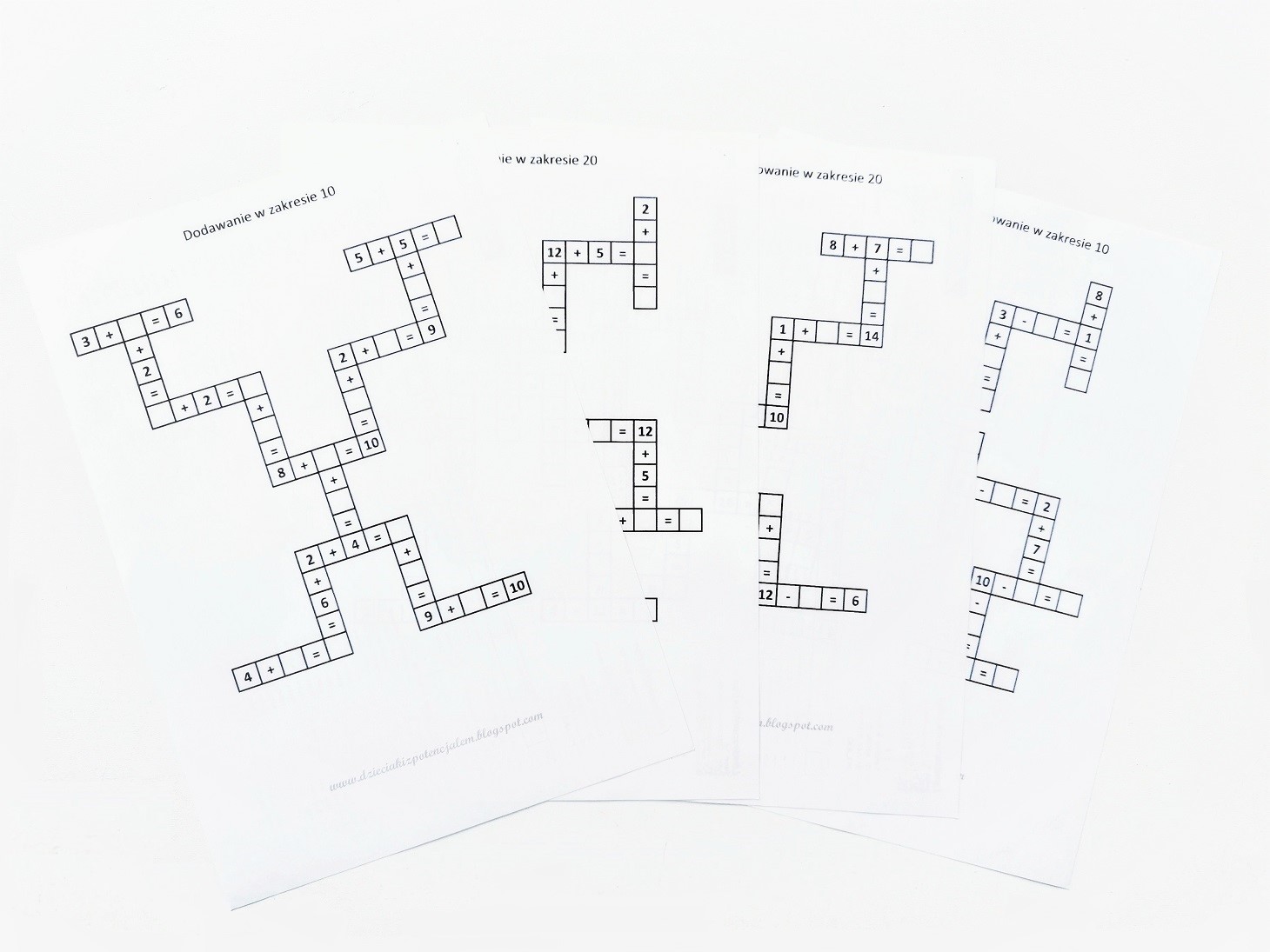 Zaczynamy od dodawania i odejmowania mniejszych liczb. Na początek to wystarczy. To ważne, żeby zacząć od czegoś łatwego bo samo pojęcie krzyżówki może być dla dzieci obce i warto najpierw „rozpracować” sposób jej uzupełniania na łatwiejszych przykładach.