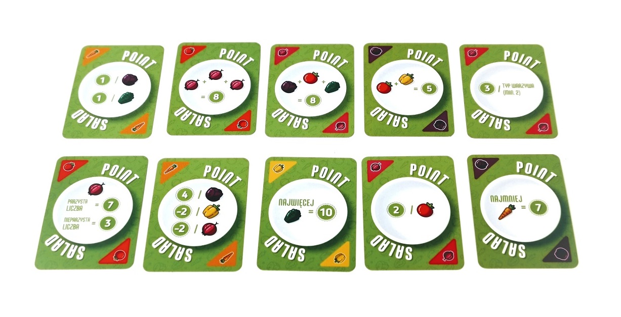 Co ciekawe, karty punktacji poza punktami dodatnimi mogą nam też przynosić punkty ujemne za niechciane warzywa. Dlatego ważne jest stałe monitorowanie posiadanych kart. Czasem też stajemy przed decyzją czy dobrać dane warzywo, które przyczyni się do zwiększenia punktacji z jednej karty, ale jednocześnie przyniesie punkty ujemne, wynikające z innej karty. Takie dylematy nadają grze rumieńców.