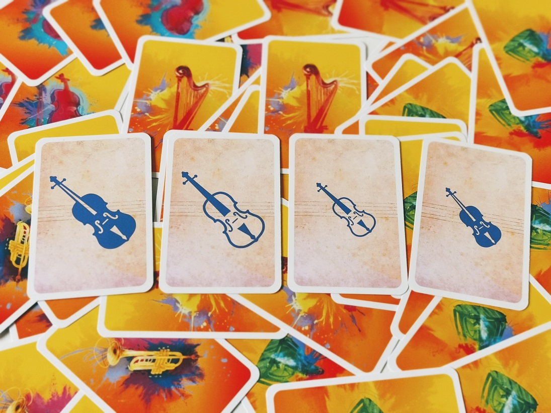 – 96 kart instrumentów (2 x po 12 kart dla każdego z 4 instrumentów);