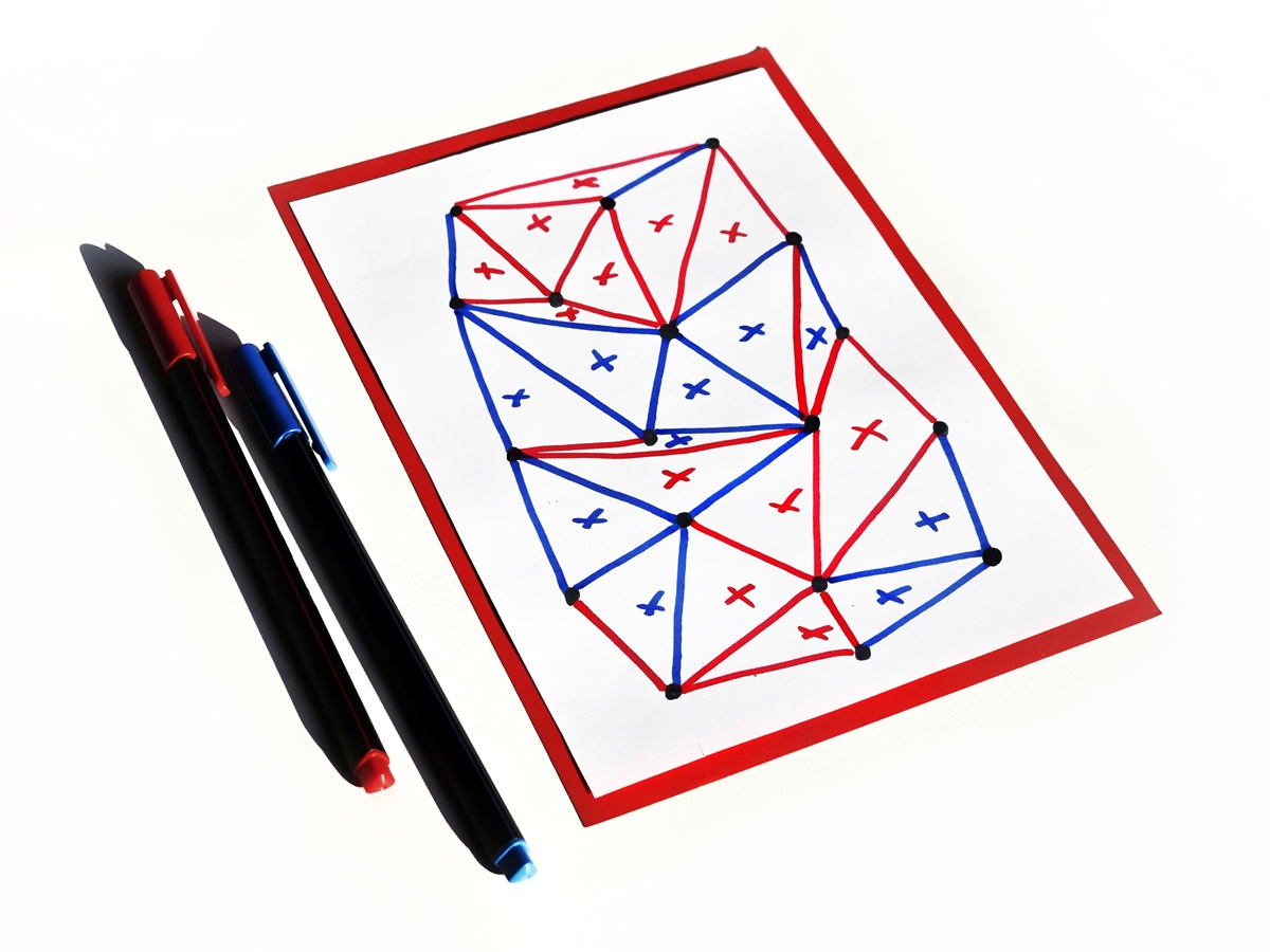 Ostatnio kilka razy natrafiłam w sieci na krótkie filmy z rozgrywek w prostą grę na kartce. Na pierwszy rzut oka bardzo przypomina grę w Kropki i kwadraty. Tu jednak dodatkowo musimy uruchomić wyobraźnię przestrzenną. Gra w trójkąty jest szybka, prosta i nie wymaga żadnych większych przygotowań – czyli posiada cechy gry idealnej. Do takich właśnie wracamy najczęściej.